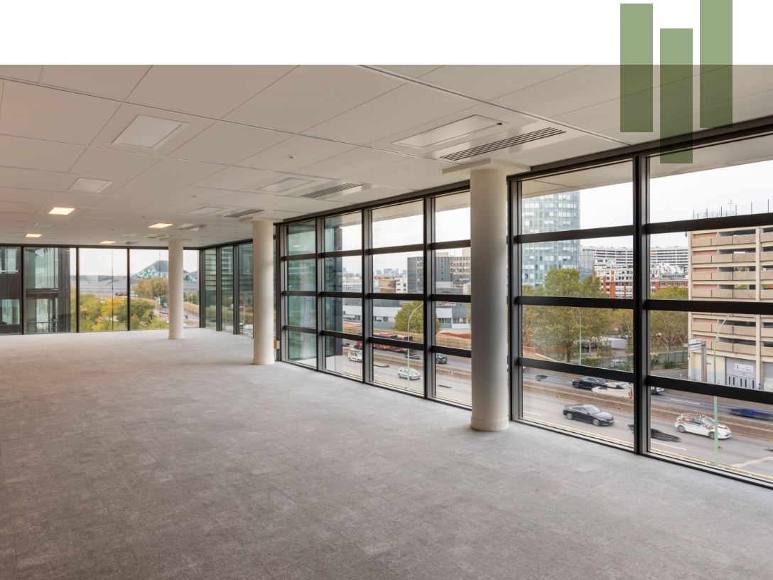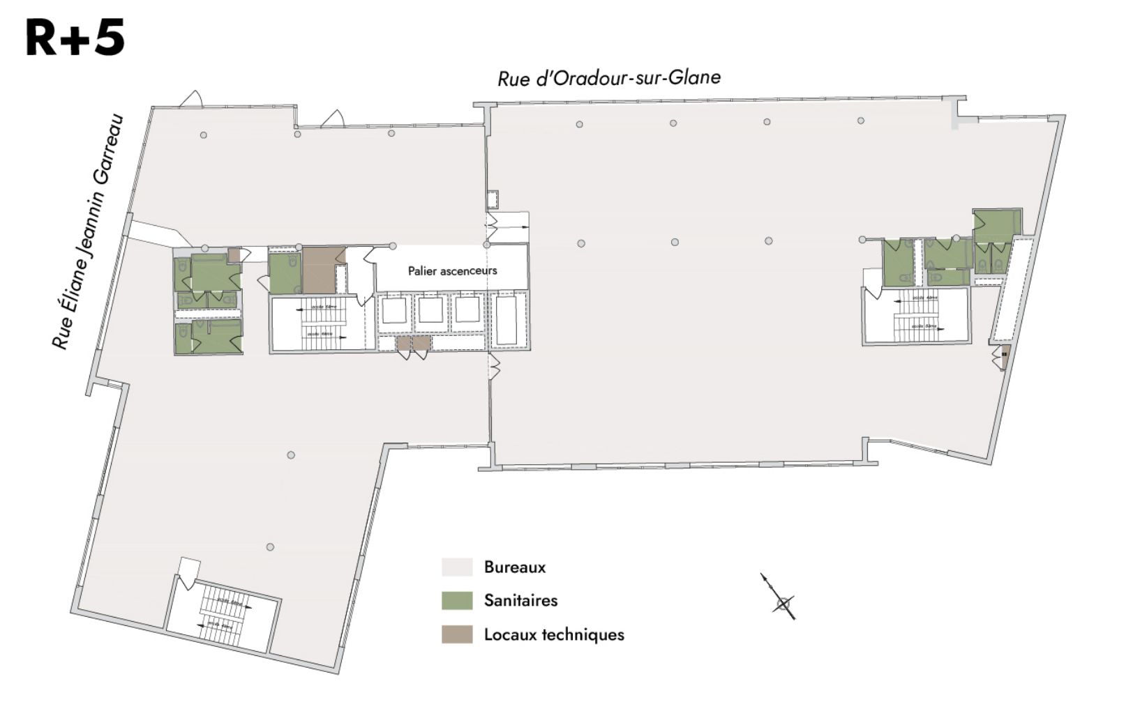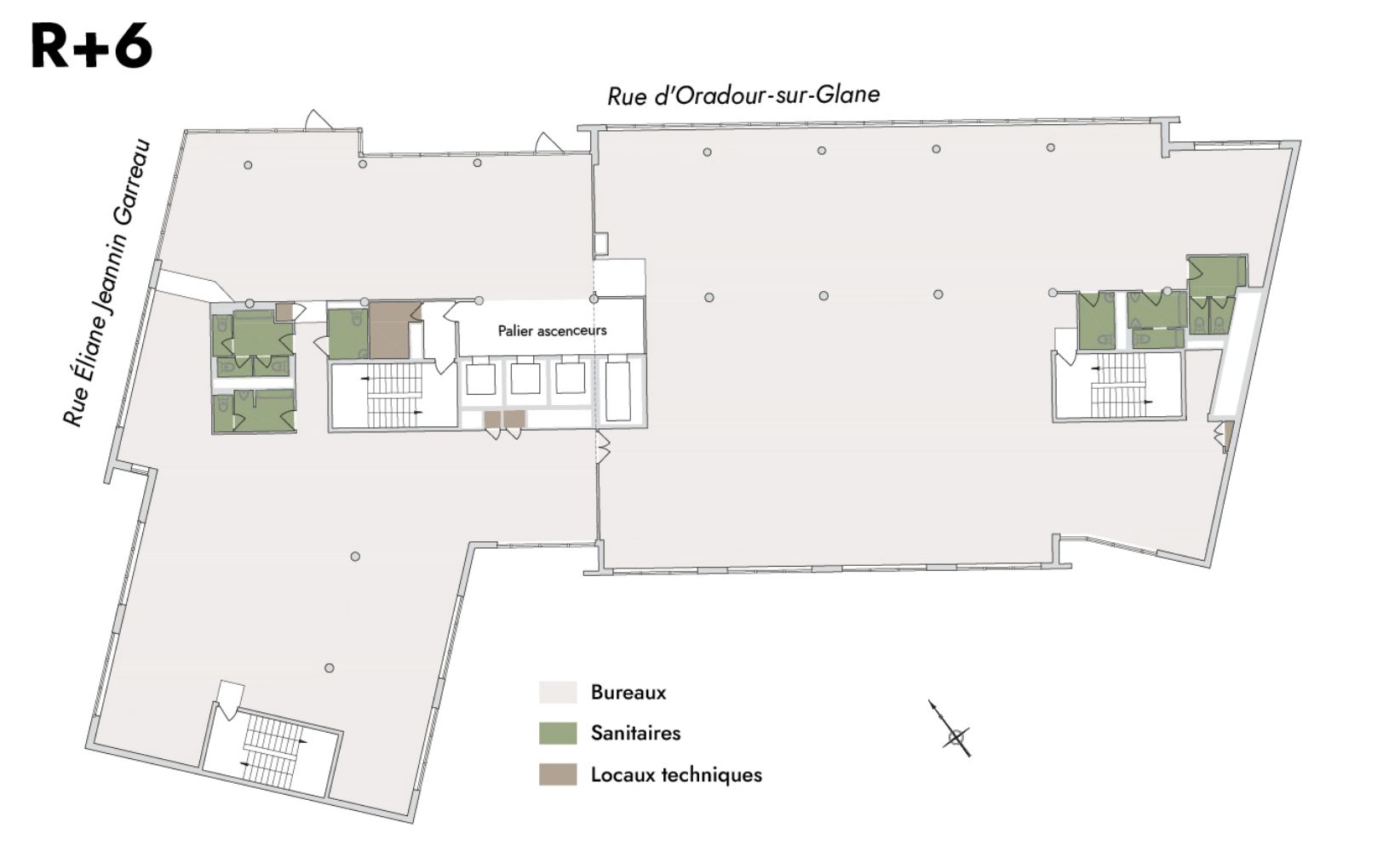 Plateaux de bureaux constitués de 2 compartiments avec sanitaires, dont l’accès principal se fait par le palier ascenseur.