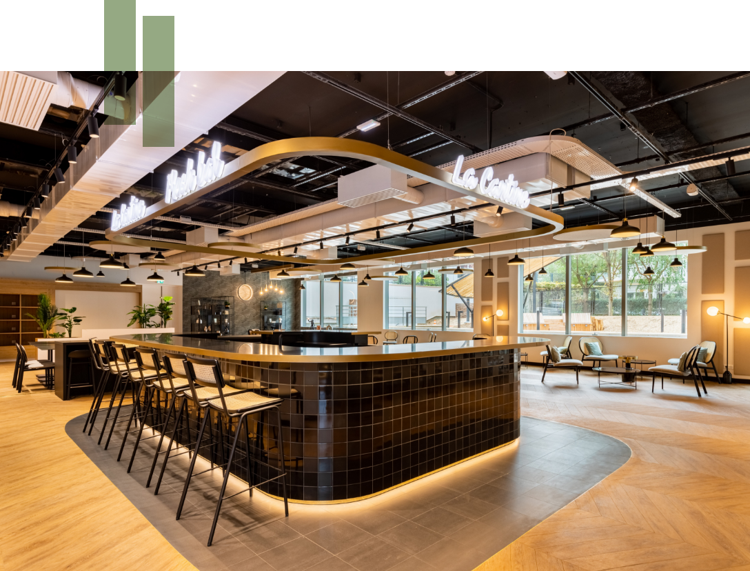 Une offre de restauration légère est proposée avec l’accès à des réfrigérateurs connectés et un bar à salades.